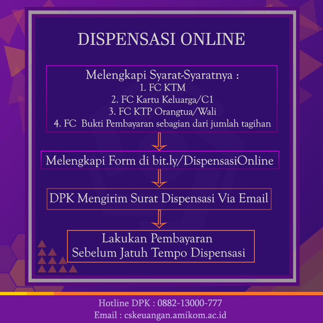 Layanan Keuangan online berlangsung tanggal 26 Maret – 20 Mei 2020, Cuti bersama tanggal 22 Mei – 31 Mei 2020, Layanan dibuka kembali tanggal 2 Juni 2020 – masa tanggap covid19 Univ.Amikom dinyatakan berakhir.