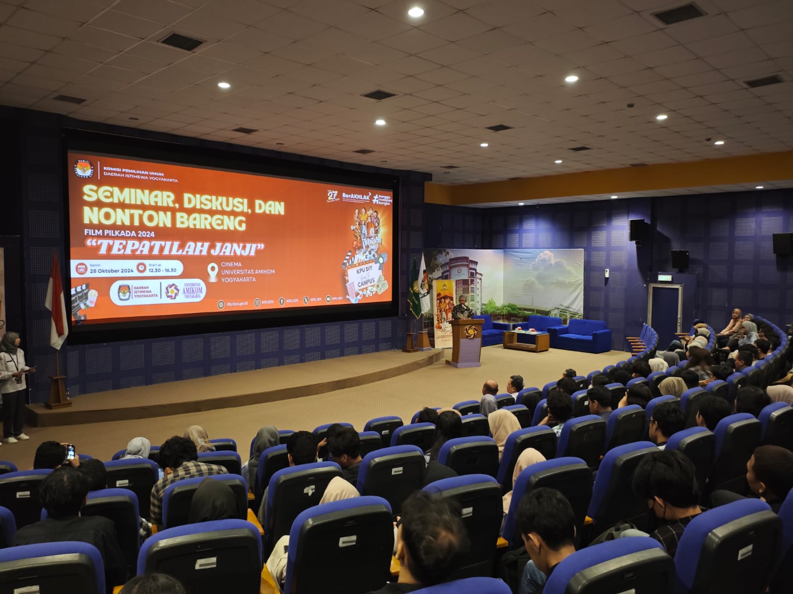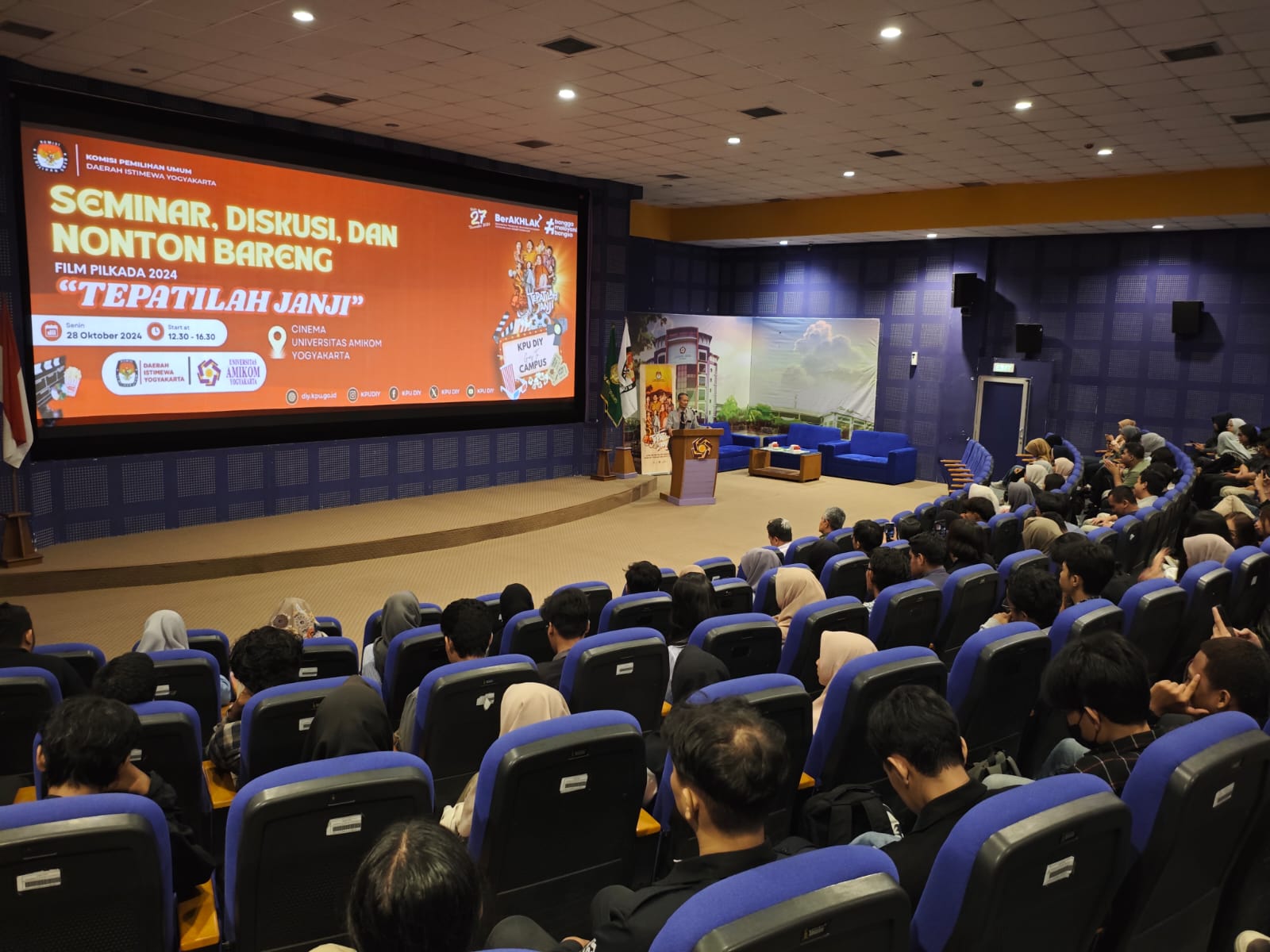 Acara Ditutup dengan Diskusi setelah pemutaran film dipandu oleh perwakilan KPU DIY dan Prodi Ilmu Pemerintahan AMIKOM. Mereka memberikan wawasan tentang makna demokrasi, pentingnya partisipasi pemilih, dan pesan moral dari film. Para peserta, yang mayoritas mahasiswa, turut berperan aktif dalam sesi tanya jawab dan berbagi pandangan.