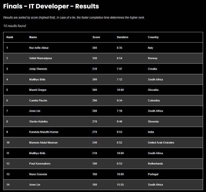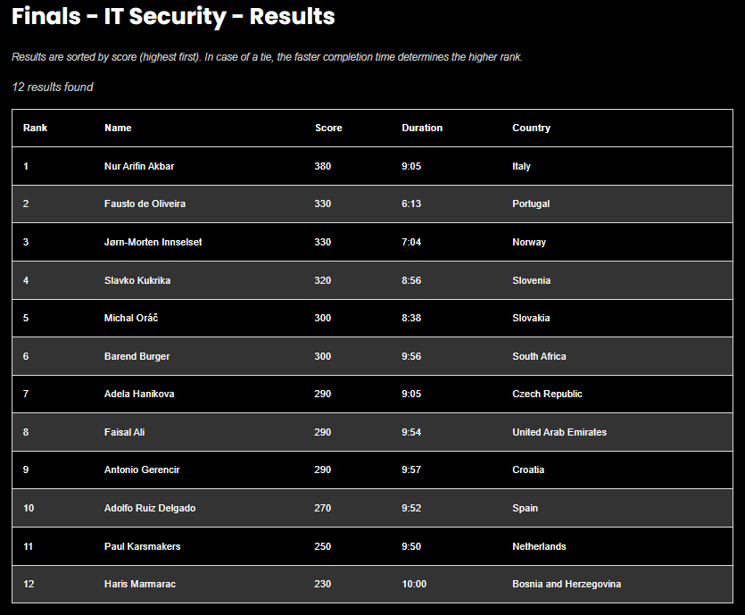 Arifin, yang saat ini sedang menempuh studi doktoral di bidang Matematika dan Ilmu Komputer di Università degli Studi di Palermo, Italia, mewakili negara tersebut dalam kompetisi ini. Ia bersaing dengan para juara nasional dari berbagai negara dan berhasil unggul dalam dua kategori yang sangat kompetitif. Kategori “IT Developers” menguji kemampuan pengembangan perangkat lunak, pemrograman lanjutan, dan pemecahan masalah teknis, sementara kategori “Cyber Security” menekankan keahlian dalam mendeteksi ancaman digital, keamanan jaringan, dan strategi pertahanan siber.