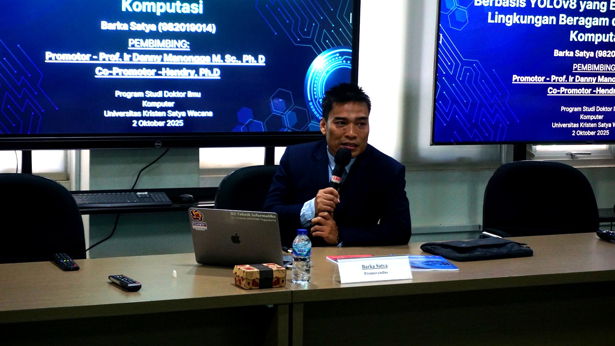 Salatiga, 2 Oktober 2025 — Dosen sekaligus Ketua Program Studi D3 Teknik Informatika Universitas AMIKOM Yogyakarta, Barka Satya, M.Kom., resmi menuntaskan pendidikan doktoralnya di Program Studi Ilmu Komputer Universitas Kristen Satya Wacana (UKSW). Ujian tertutup tersebut dilaksanakan pada Kamis, 2 Oktober 2025 di Ruang FTI 120 Lantai 1 Gedung FTI UKSW.
