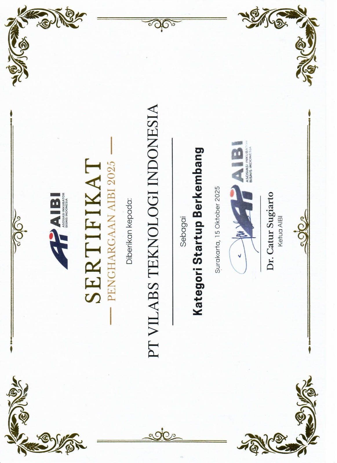 Yogyakarta – Startup teknologi PT VILABS, binaan Amikom Business Park (ABP) Universitas Amikom Yogyakarta, meraih penghargaan “Startup Bisnis Berkembang” pada ajang AIBI Award 2025 yang diselenggarakan oleh Asosiasi Inkubator Bisnis Indonesia (AIBI) di The Sunan Hotel, Surakarta, 15–17 Oktober 2025.