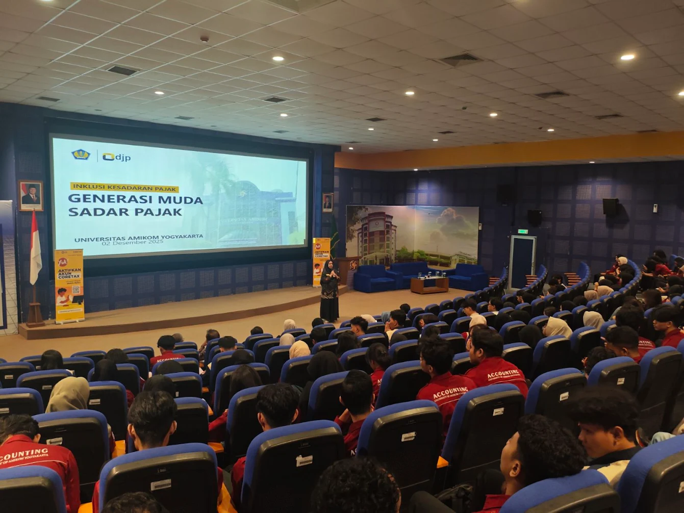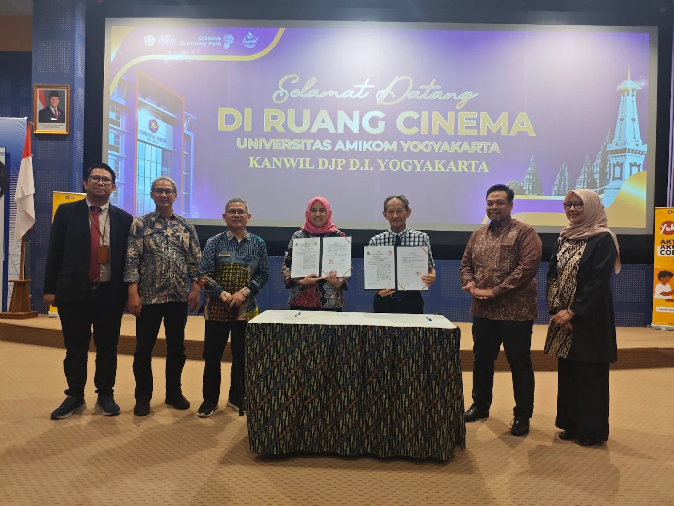 Universitas AMIKOM Yogyakarta meresmikan pembentukan Tax Center melalui penandatanganan Nota Kesepahaman dengan Kantor Wilayah Direktorat Jenderal Pajak Daerah Istimewa Yogyakarta (DJP DIY) pada Selasa, 3 Desember 2025 di Ruang Cinema Universitas AMIKOM Yogyakarta. Pembentukan Tax Center ini bertujuan memperluas edukasi perpajakan, meningkatkan literasi fiskal bagi civitas akademika, serta mendukung upaya nasional dalam menumbuhkan kesadaran pajak sejak dini.