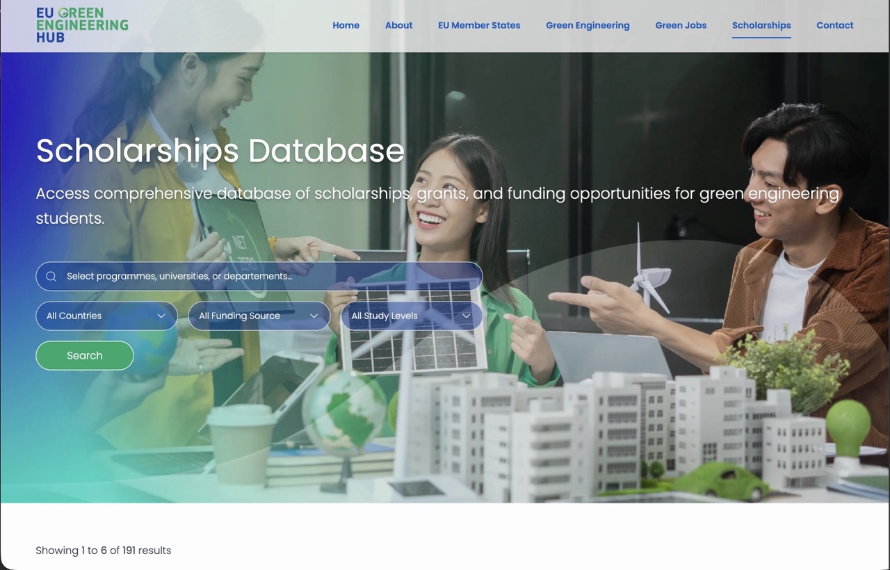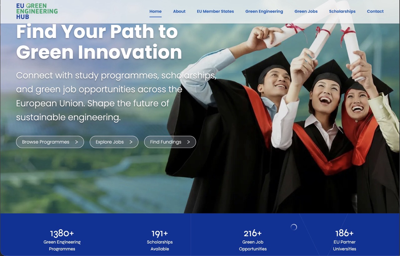 EU Green Engineering Hub dirancang sebagai pintu masuk bagi masyarakat Indonesia untuk mengenal lebih jauh peluang di bidang rekayasa hijau. Melalui platform tersebut, pengguna dapat menelusuri program beasiswa di berbagai negara anggota Uni Eropa. Informasi tersebut mencakup bidang-bidang seperti energi terbarukan, desain berkelanjutan, teknologi lingkungan, peluang riset, magang, pekerjaan, serta pendanaan pendidikan.